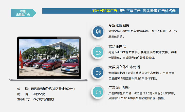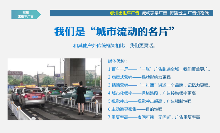 鄂州出租车广告,广告频次高,覆盖范围广,广告传播速度快!