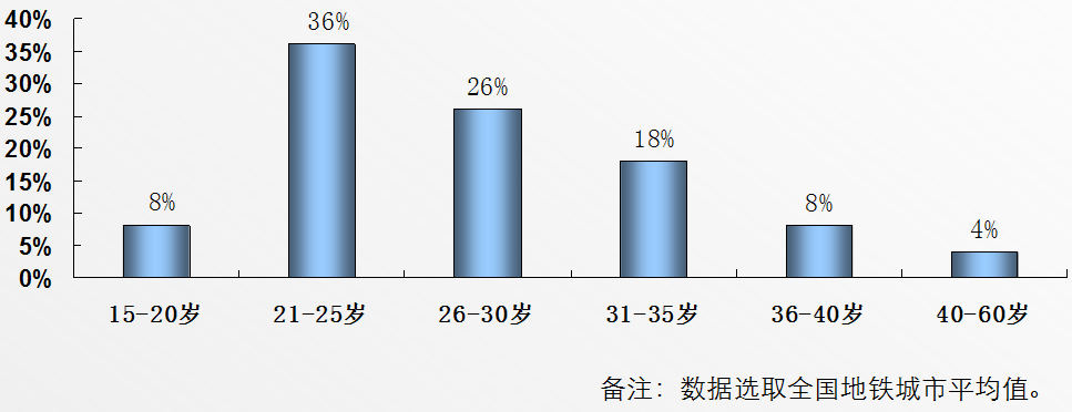 | 地铁乘客普遍年轻,以21-45岁占主导,平均年龄31.7岁,是消费活力最强的人群。 |