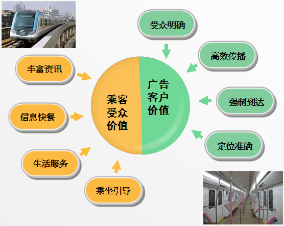 | 地下空间无窗外可视物,在地铁车厢封闭的环境下乘客必看,具有广告强制性。 |