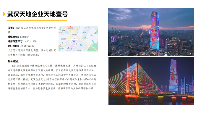 武汉灯光秀广告价格每年都会有调整,具体情咨询当年最新广告价格!