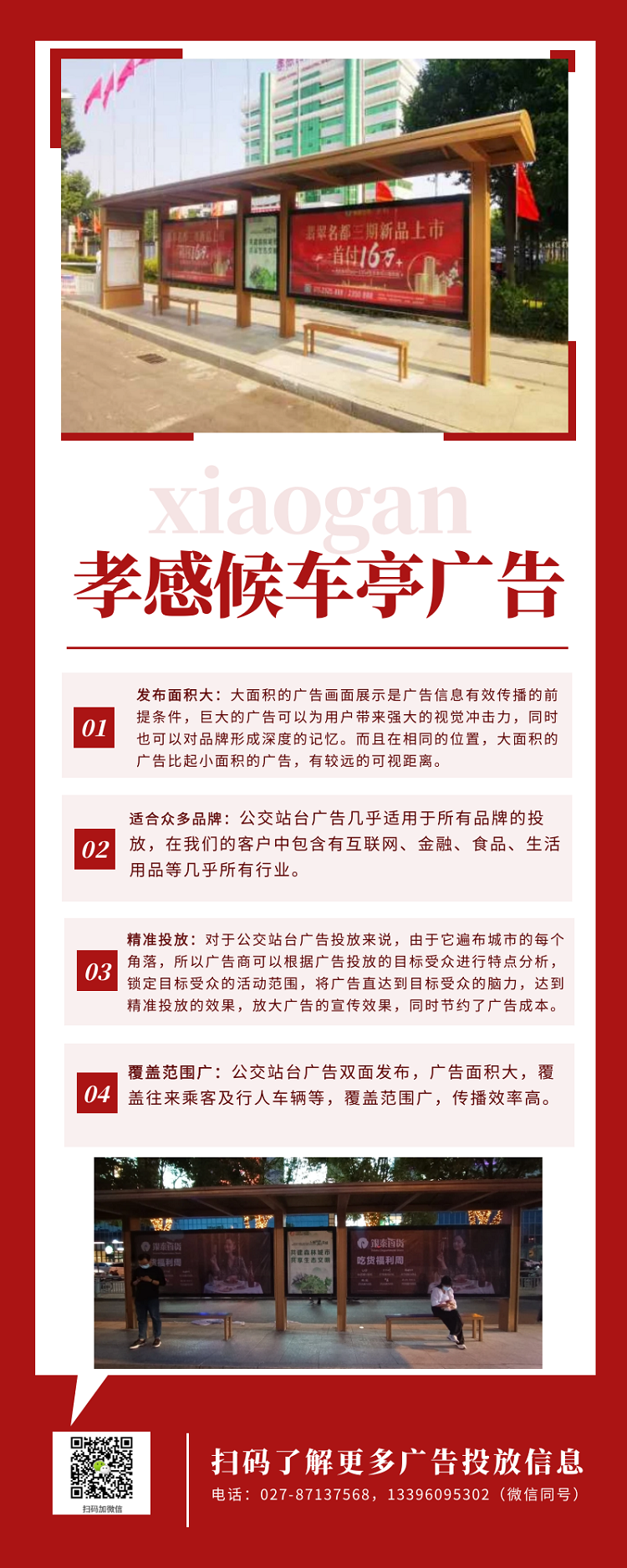 孝感候车亭广告,覆盖孝感主干道,超大面积,双面发布,传播迅速!