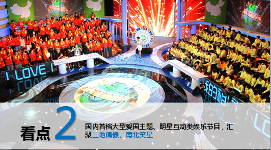 节目口号:欢歌笑语同聚首,我爱我的祖国秀