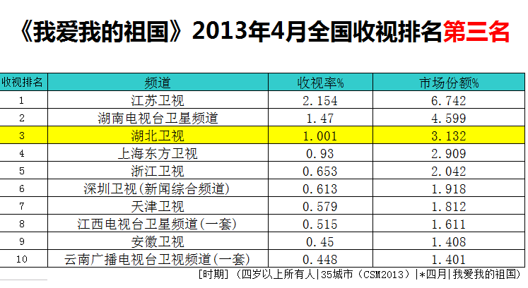 《我爱我的祖国》全国收视黑马