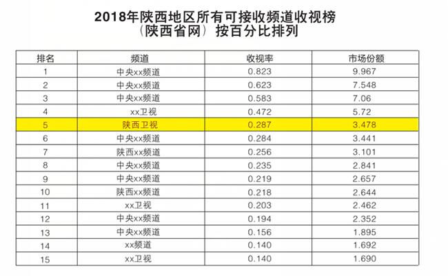 收视排名,陕西卫视稳居第一,全天、白天、晚间三大时段均以绝 对优势超越其他省级卫视频道,全天无死角
