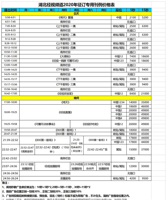 2020湖北经视广告价格表