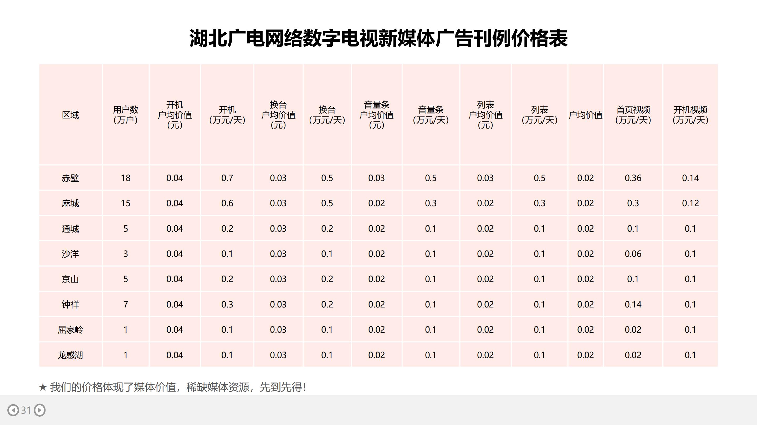 三、湖北数字电视新媒体的广告价格: