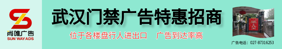 - 武汉门禁广告,按面发布,广告投放千人成本低,广告发布灵活,面积大,适合长年投放,武汉门禁广告,已成为各类产品迅速占领和巩固市场,树立品牌形象和加深品牌印象的更有效、更强大的户外媒体。