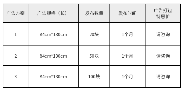 - 特别说明 :每年广告价格不同。最新广告投放价格,请具体咨询当年价格!